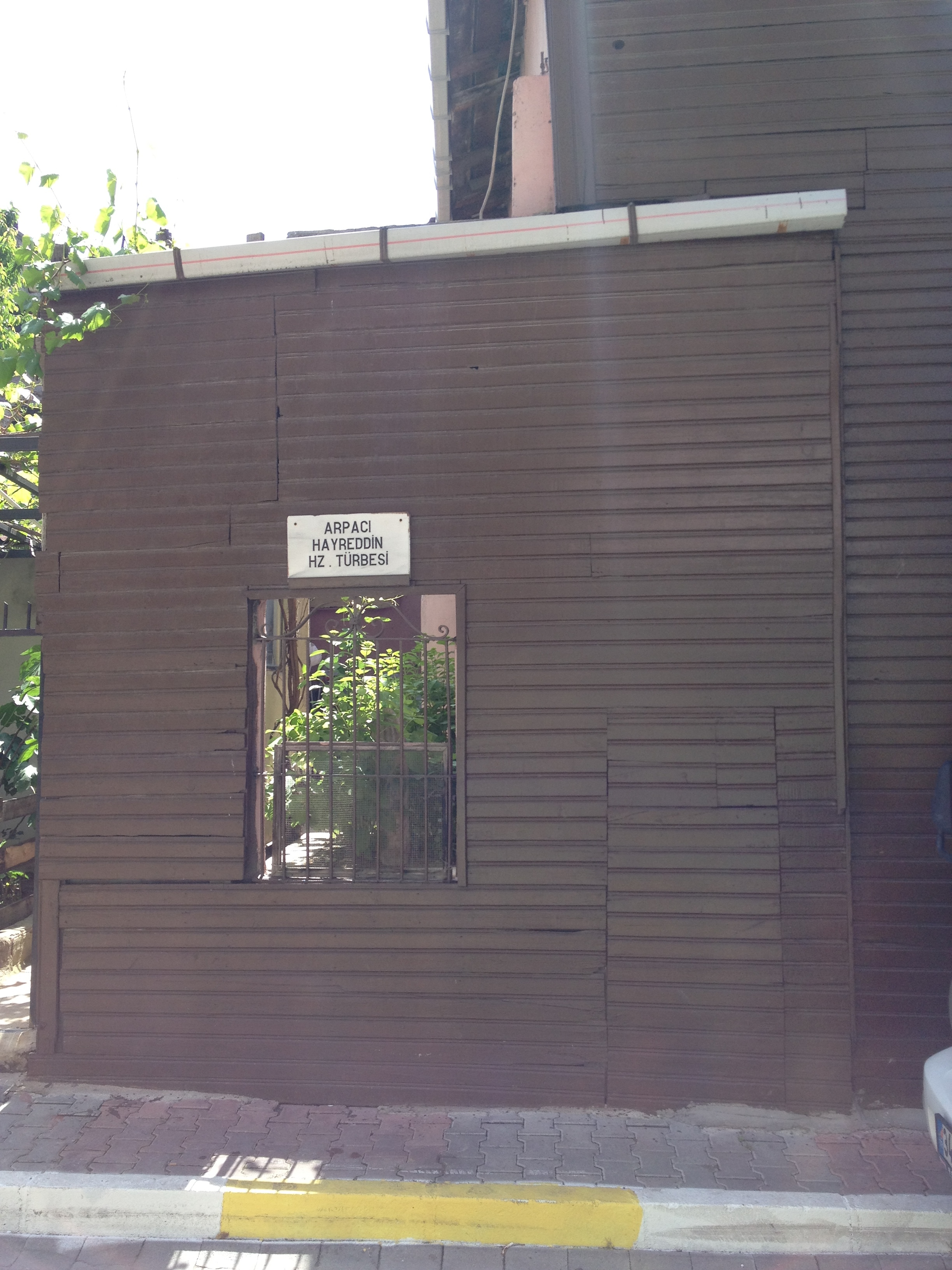 At this same intersection but across the street is the Arapcı Haryettin Camii.  At the back of this mosque on the righthand side of Arapcı Haryettin Sokak is the tomb of Heyrettin or Khayr al-Dīn. This grave, like the tomb of Abū Dardā’, is outdoors and visible through an iron grill. Unfortunately I was unable to obtain any information concerning this last supposed gravesite of a Companion aside from its designation as such a place. The tomb appears to have been constructed in 890/1456, a few years after the Ottoman conquest of Constantinople (Nermi, Eyüp Sultan Tarihi, p. 32).
