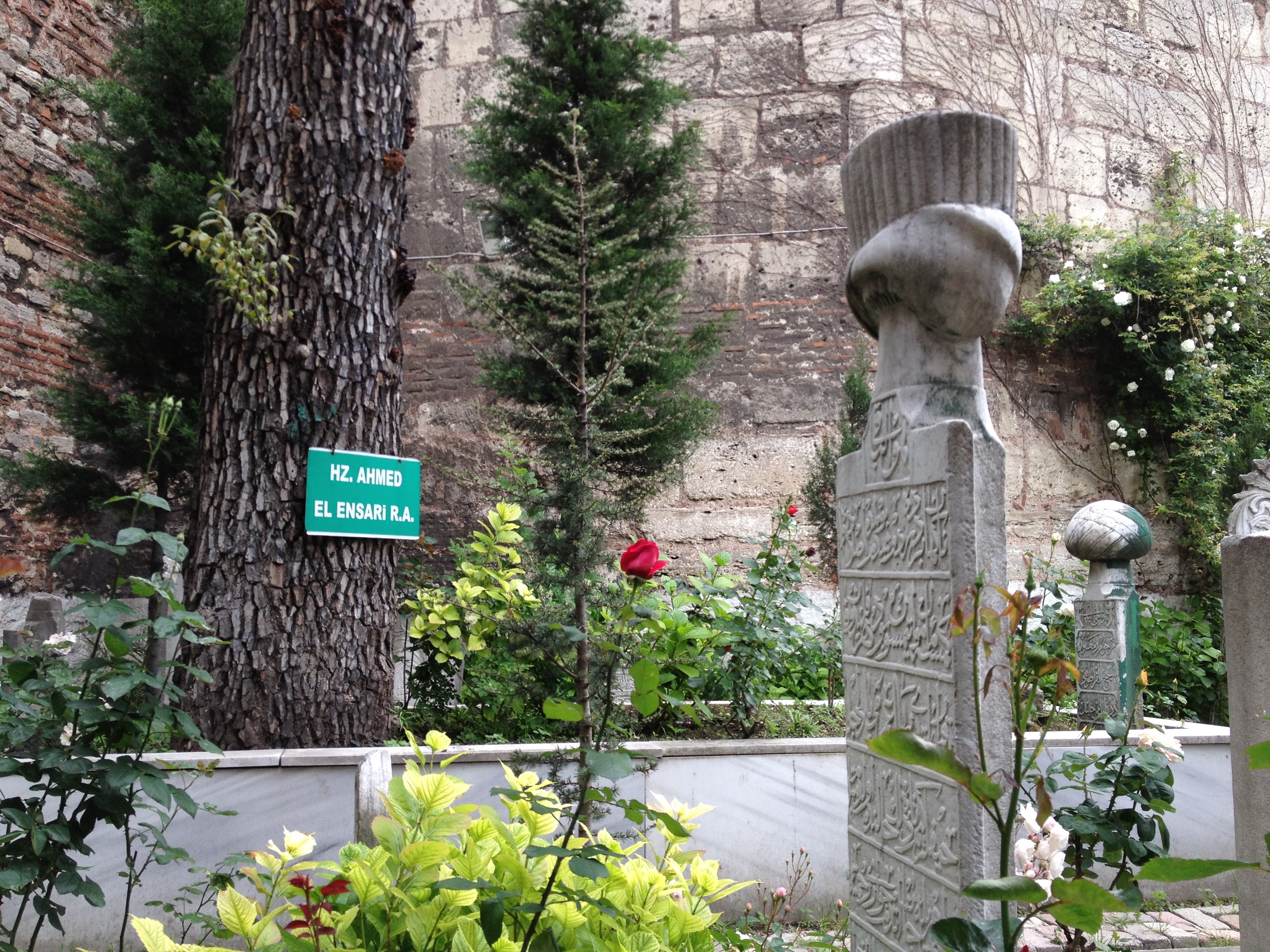 The tombs of the three Companions of the Prophet with whom we are presently concerned can be reached in less than a ten minute walk from the Eyüp Sultan Mosque. Head south from the mosque complex down Zalpaşa Caddesi passing Zal Mahmut Paşa Camii on your left. Shortly thereafter, also on the left, you will find the gated garden tomb of Ebu Derdaǧ or Abū Dardā’ (d. 32/652).
